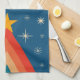 Minimalistiskt rött och blått Retro Groovy Julgran Kökshandduk