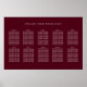 Modern och minimal solid burgundröd bakgrund i färg, 10 bord bröllop sätesdiagram. Anpassa text, anpassa teckensnitt stil, färg och storlekt. Designad att samordna med vår burgundi samling av botaniska Blommigtar.