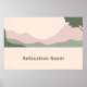 En bild poster med en minimalistisk illustration av ett serenlandskap med berg och träd. Det kommer att ge en känsla av fullhet och avslappning. Den här väggkonsten blir perfekt för dekoration hemma eller på kontoret.
