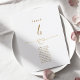 Kembrace underskattade elegans med vårt moderna och minimalistiska vita sittande bröllop. Den har en elegant design, den innehåller bordsnummer, en gästlista och ett romantiskt guld-rep-motiv, perfekt för en aning sofistikering på din speciella dag.