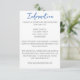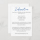Vi presenterar vårt mångsidiga perfekt-kort till dina bröllopsinbjudningar i bröllop. Det här eleganten ger dig gott om utrymme för att inkludera viktig information för dina gäster, t.ex. hotellrum, vägbeskrivning, alternativ för transport, webbplatsen för bröllop och mycket annat. Se till att gästerna har all information de behöver för att fira din speciella dag med lätthet och stil. Anpassa ditt visitkort idag och se till att alla får en sömlös och minnesvärd bröllop-upplevelse!