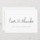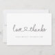 Vi presenterar vårt moderna tackkort för Kärlek och tack Anpassningsbar för hjärtskript Photo Bröllop, ett vackert och personlig sätt att uttrycka tacksamhet till gästerna i bröllop. Kortet har ett calligrafteckensnitt för eleganten "Kärlek och tack" för ord tillsammans med en ljuvlig hjärtedetalj som skapar en romantisk och hjärtfull design. Kortet förkroppsligar ett modernt, chic- och snyggt estetiskt, skapar det en perfekt för att uttrycka din uppskattning. Anpassa kortet med namn, bröllop-datum och ett speciellt anpassat hälsning från hjärtat. Den här anpassningen ger en personlig fingervisning och gör det möjligt för dig att framföra din tacksamhet på ett unikt och meningsfullt sätt. Inkludera ett speciellt foto från din stora dag, fånga ett värdefullt ögonblick som dina gäster kommer att ta hand om och ta med dig minnen från firande. För en speciell beröring i extra kan du överväga att använda ett foto som inkluderar hedersgäster såsom föräldrar till bruden och brudgummen, mor- och farföräldrar, brudgummar, marskalkar, blomflickor, ring eller gudföräldrar. Denna gest kommer att få dem att känna sig verkligt speciella och uppskattade. Att skicka dessa tackkort i personlig är ett tankeväckande sätt att visa er uppriktiga tacksamhet och få gästerna att känna sig uppskattade för att de deltar i resan i bröllop. Det är ett tecken på uppskattning och en påminnelse om kärlek och glädje som delas på er speciella dag. Kontakta info@lddesignloft.com om du behöver hjälp med den här mallen.