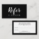 Minimalistiskt referenskort för svartvitt och vitt elegant med snyggt handritad skripttypografi. Anpassa genom att lägga till din kontaktinformation på motsatt sida med ditt erbjudande om hänskjutning. Designad av Thisisnotme©