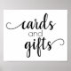 Enkelt svartvitt-vågrät "Cards & Gifts"-dusch, party eller bord-mottagningsskylt med en roligt, avslappnad handskript. Den klassiska designen innehåller ett modernt hanterat textöverlägg för citattecken. Det vackra teckensnittet med anpassadets bakgrund färg gör det enkelt att passa alla teman. För andra färg eller matchande produkter, gå till butiken JustFharryn Zazzle eller kontakta designern, c/o fharryn@yahoo.com Alla höger reserverade. #zazzlemade