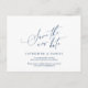 Det här är det moderna minimalistiska, rena skriptet, designtema, med det blå typsnittet Navy, Bröllopsfest Investiged (Senched / Senarelement) vycard (spara the new date). Det är perfekten och eleganten som gör det möjligt att lägga om meddelandet till vänner och familj.