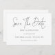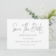 Minimalistiskt skript Alla Färg sparar datumet. Enkel elegans med Spara datumet i ett modernt skript.Resten av texten kan du enkelt anpassa. Här visas svart på vitt, men färg och bakgrund kan ändras om du vill med hjälp av alternativet Anpassa ytterligare.