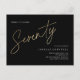 Modern minimalist 70:e födelsedagsfest inbjudan har handskript för snyggt faux guld-folie 70 och dina party-detaljer i klassiskt serif-teckensnitt på svart bakgrund färg, enkel och elegant, underbar vuxen, delmålningsinbjudan för manar och kvinnor. Den svarta bakgrunden färg kan ändras till valfri färg.
