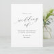 Ett enkelt men elegant, monokromt bröllopsprogram med "bröllop av" i stor modern kalligrafi som påstående, parad med klassiskt serif-teckensnitt.