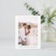 Bröllop spara datum-kort med foto på framsidan. Spara datumkorten innehåller en modern handskriven kursiv skripttypografi som är elegant, enkel och modern till använda efter att du har minimalistisk enkel bröllopsdag firande.