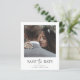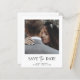 Den här enkla och elegant svarta och vita bröllop-budgeten sparar datumkortet med ditt personliga foto på framsidan, med en blandning av modernt handskript och fet serif-text. Det finns utrymme för ytterligare information på baksidan, inklusive webbplatsen för bröllop.