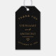 Denna minimalistiska Märkre av Tacken Black and Guld Heart är ett snyggt- och elegant-sätt att visa er uppskattning för gästerna i bröllop. Med en elegant svart design med ett känsligt guld-hjärta och "Tack"-meddelande får du ett modernt, minimalistiskt tryck på dina bröllopsfavoriter eller -presenter. Perfekt för att fästa till att gynna säckar, keepsakes eller någon speciell behandling, höjer den här märkrn presentationen med sofistikering och nåd. Dess tidlösa utformning kompletterar alla bröllop-teman och skapar det en vacker och hjärtlös gest som gästerna kommer att minnas.