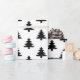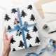 Backa dina gåvor med det här minimalistiska Svarta och vita Julgranar-blandat Helgdag som täcker Pappert Lakan. Det här är en enkel design med vit bakgrund och små svarta Julgran-silhuetter.