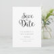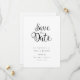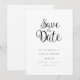 Det här minimalistiska kortet för att spara datumet har ett elegant manus för att spara datumet ovanför dina detaljer skrivna med elegant typografi.