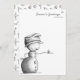Minimalistiskt svart och vitt snögubbe med fågel julkort