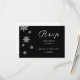 Fånga den fina elegansen i vintern-bröllopet med dessa minimalistiska svarta och vita OSA kort eller svarskort. Dessa OSA kort har ett känsligt snöflingstecken och en djup svart bakgrund och kompletterar perfekt serenen från karm från din inbjudningssvit. Perfekt för par som kärlek med en chic och tidlös estetik, gör den eleganta vita detaljen att den här designen blir lite sofistikerad. Dessa OSA kort har på ett utmärkt sätt angett tonen för ert vinterland firande, och skapar dem ett sömlöst tillägg till ert moderna klassiska bröllop-tema. Anpassa dem med dina måltider, matbehov, osa, brud och groom namn, bröllop-datum. Om du behöver hjälp med att anpassa den här produkten kontaktar du mig med hjälp av meddelandeknappen nedan så hjälper jag lycklig.