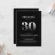 Inbjudan era vänner och nära vänner till en överraskning för 30års födelsedag firande med denna snyggt minimalistisk svart och silver födelsedagsfest inbjudan.