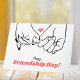 Märk vänskapens skönhet med det här elegantens hälsningskort. Med en minsta svart- och vitlinjekonst på två händer som är länkad av finger med rosa, med ett litet rött hjärta som symboliserar vänskapens band, är detta kort perfekt för att förmedla hjärtliga känslor. Meddelandet "Lycklig Vänskap Day!" på framsidan kompletteras med ett personligt meddelande inuti, vilket gör att du kan lägga till en egen känsla för din vän. Det här kortet är en underbar keepé som kapslar in vänskapens innersta väsen.