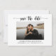 nyheten om ditt kommande bröllop med det här svarta och vita spara-det-datumkortet i eleganten. Anpassa texten på framsidan och tillbaka till alla detaljer för speciella dag. Lägg till ett foto för ett verkligt spara-det-datum-bröllop-kort för anpassningsbar.