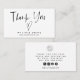 Modern och minimalistisk text för små företag som innehåller en handskriven text som säger "tack" med ett hjärta. Du kan lägga till din logotyp och ett enkelt meddelande på baksidan tillsammans med medie- och webbplatsinformationen i social.