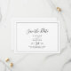 Det minimalistiska vågrät att spara datumkortet är perfekt för ett enkelt bröllop. Den moderna romantiska designen har klassisk svart- och vit typografi parad med en rografi av rustik men elegant med vintage handskrivet stil. Anpassade i alla färg. Behålla designen enkel och elegant, som den är, eller anpassa den genom att lägga till egna bilder och teckningar.