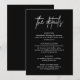 Kortet "Minimalist Black Bröllop Details-hölje" ger dig sömnig sofistikering till bröllop-kontoret. Den har en ren, svart utformning och erbjuder en elegant för viktiga detaljer om bröllop, t.ex. riktningar, utrymmen eller speciella anteckningar. Perfekt för par som anammar modern minimalism, detta kort paras utan vidare med vilken inbjudningssvit som helst. Dess djärva men underskattade utseende garanterar att informationen från bröllop tydligt förmedlas och stil, vilket ger en aning tidlös elegans till din speciella dag.