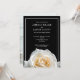 Elegantens svarta bakgrund med vit ros-bild med foto på baksidan. Denna moderna och minimalistiska bröllopsinbjudan är ett utmärkt sätt för dina gäster i inbjudan. Anpassa bara din händelseinformation och ditt foto till den här mallen för att skapa en inbjudan av typen en.