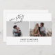 Ett enkelt och modernt kort för vit bröllop spara datum, designat med skript och foton för förlovning med 2 anpassaden. Anpassa med din framtida information om bröllop på kortets framsida och baksida.