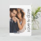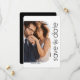 Detta minimalistiska meddelande med vit och svart spara på dagen fångar det centrala i enkelhet och sofistikering. Med fotot omgiven av ett vitt bågat ram, med seriöst och kursivt teckensnitt på framsidan och ditt meddelande på en svart bakgrund på baksidan.