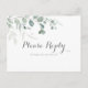 Detta minimalistiska menyval för eukalyptus osa postcard är perfekt för ett rustiskt bröllop. Utformningen har grönt eucalyptus löv för vattenfärgsfärgers elegant.
