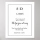 En mall för ett modernt minimalistiskt badrumsskylt i bröllop som kan ändras och skrivas ut hemma. Restrumsskylten har en svart gräns och ett grundläggande inledande monogram.