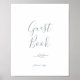 Denna minimala dammiga blå gästbokssköld med bladmotiv är perfekt för ett elegant bröllop. Designen har en enkel grönsilhuett i ljust skifferblå med klassisk minimalistisk stil.