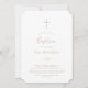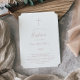 Denna minimala rosa dopinbjudan med blad är perfekt för en elegant dopceremoni. Designen har en enkel grönsilhuett i ljust rosa med klassisk minimalistisk stil.