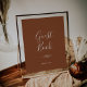 Denna minimala terrakotta-gästboksposter med bladmotiv är perfekt för en boho-bröllop. Designen har en enkel grönsilhuett i jordnära bränt orange med minimalistisk ökenbohemsk stil.