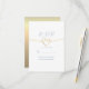 Enkelt, minimalistiskt, modernt, vitt och dammigt blått kort med guld-rep och handskript med trendig.