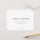 Vitt muslimskt Bröllop spara datum vykort. Det här är en elegant, ett minuskort med ett svart färg-skript. Ej fotot. Rengör. Modern. Anpassa den här mallen med Design Verktyg på Zazzle. "ord" är skrivet med snyggt typografi. Du kan redigera all information som paret namn som är skrivet på produktens fram- och baksida. Du kan använda detta kort för andra händelser som t.ex. nikah, walima osv. HennesLineForDesignStudio.