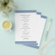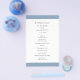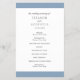Modern bröllopsprogram för dammiga blå budgetar flyger med ett fet band uppifrån och grund. Namn finns i ett klassiskt serif-teckensnitt och dina uppgifter finns i en kombination av ett modernt sans serif-teckensnitt och ett elegant-skript. Baksidan har ett band längs grund tillsammans med ditt monogram. Denna enkla och minimala utformning med traditionell formulering är underbar för ett formellt bröllop.