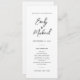 Vårt tunna bröllopsprogram-kort för elegant är perfekt för ditt minimalistiska bröllop firande. Ett vackert par med svart kalligrafteckensnitt med enkel och ren text på vit bakgrund ger ett förhöjt utseende som kompletterar snyggten. Enkel och snabb att anpassa dig med din egen bröllop-information.