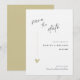 Denna minimalistiska och eleganta svart-vita spara datum-inbjudan är perfekt för ett modernt bröllop. Designen har en handskriven typsnitt och modern minimalistisk design med ett gyllene hjärta. Du kan ändra namnen, bröllopets plats och datum genom att klicka på «Personifiera».