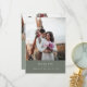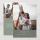 Jag vill framföra ett hjärtligt tack till era gäster med dessa minimalistkort och tackkort från elegant bröllop. Med rena skrivningar i vit sans serif typsnitt, mot en lugnande bakgrund av oliv-grått och anpassade med två av dina omhuldade fotografier, tillför dessa kort en aning tidlös elegans till ditt bröllop-kontor.