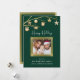 Bär julandan med det här lyxiga helgdag fotokortet, designat att imponera på. Bakgrunden till den djupgående grönten är en sofistikerad arbetsyta för de exquisite guld accents, inklusive twinkling-stjärnor och delikata prydnadsföremål som ger en fin gnistra. Din familjs favoritfoto är elegant centrerat i en rik guld ram och skapar det som en brännpunkt i designen. Eleganten "Glad helg" kalligraphy inbjudan värmeth och personlig anslutning. kärlek och hälsning med det här vackert utformade kortet som förkroppsligar julhelgens glädje och fantasi.