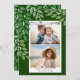 Minimalt modernt 2-foto - botaniskt oliv grönt julkort