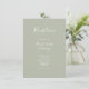 Bröllopsmottagningskortet har en elegant, modern och minimal typografisk design med ett sage grönt färg-schema, redo för dig att anpassa dig med den speciella dagen. Bläddra i Eleganten Sage Grönt Minimal Bröllop Suite för matchande objekt.