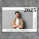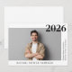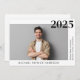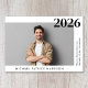Minimalt, modernt studenten-meddelande med student-fotot och deras gradår namn, skola och klass i enkel typografi.