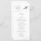 Chic, modern och minimal repetitionsmiddag eller målbröllopsmenykort för resetema med en enkel grått svart och vit logotyp av flygplanet i monogrammet överst och med retrotypografi. Alla färg och typsnitt kan redigeras för att matcha färden, äventyr eller det roliga temat för ditt evenemang.