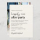 Minimal modern bröllopsmottagning för lätt grädde sparar datumet. Framsidan har "Lyckligtvis ända efter Party" i en blandning av ett contemporary- och fet trendig- typografi. Anpassa ditt meddelande från giftermål och spara datumet och lägg till namn i ett namnteckning skript. På baksidan finns foto, namn och bröllop och data (om bröllop och data är desamma, ställ på samma linje som namn bredvid hjärtat).
