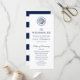 Lägg till dina uppgifter om du vill skapa ett unikt och klassbart bröllopsprogram-kort i nautiska stil. Den här designen har en illustration av nautisk vintage, följt av dina detaljer under den. På motsatt sida finns en serie marin och vit rand för att slutföra utseendet. Alla inslag i det här objektet kan justeras med hjälp av anpassningsfunktionen. Njut av att skapa och skapar det själv.