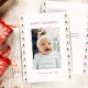 Det här charmerande anpassadet julfotkort har en ren och minimal vågigt blankofoto ram med rosa båge och Julgran gräns. Visa din favoritfamiljs foto som tillför elegans och värme till dina julhälsningar.
