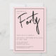 Modern 40-års inbjudan i rosa med svart handskrift/typografi. Matchande artiklar och festutbud finns också tillgängliga. Använd knappen 'skicka meddelande' nedan för hjälp med ytterligare anpassning och specialförfrågningar. © Zoe Chapman Design