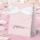 Flickaktig Feminint Minimalistiskt Enkelt Rent Rosa Rosa Monogram Namn Signatur Skript Anpassad Personlig Favoritlåda. Denna design med förnamnet i en vacker handstils-svansad typsnitts-signaturtypografi (eller kalligrafi) på pastell dammig rosa eller ljusrosa bakgrund. Dessa flickaktiga kvinnliga presentaskar är bra för att dela ut presenter, gästpresenter och godsaker under en kommande födelsedagsfest, baby shower, BBQ, 16-årsdag, bröllopsfest, möhippa, brud shower, årsdag och mer.