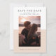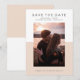 Detta stilrena, moderna kort för att spara datum har minimala block av chic rosenskiftande rosa och vita färger, med ditt foto i mitten.